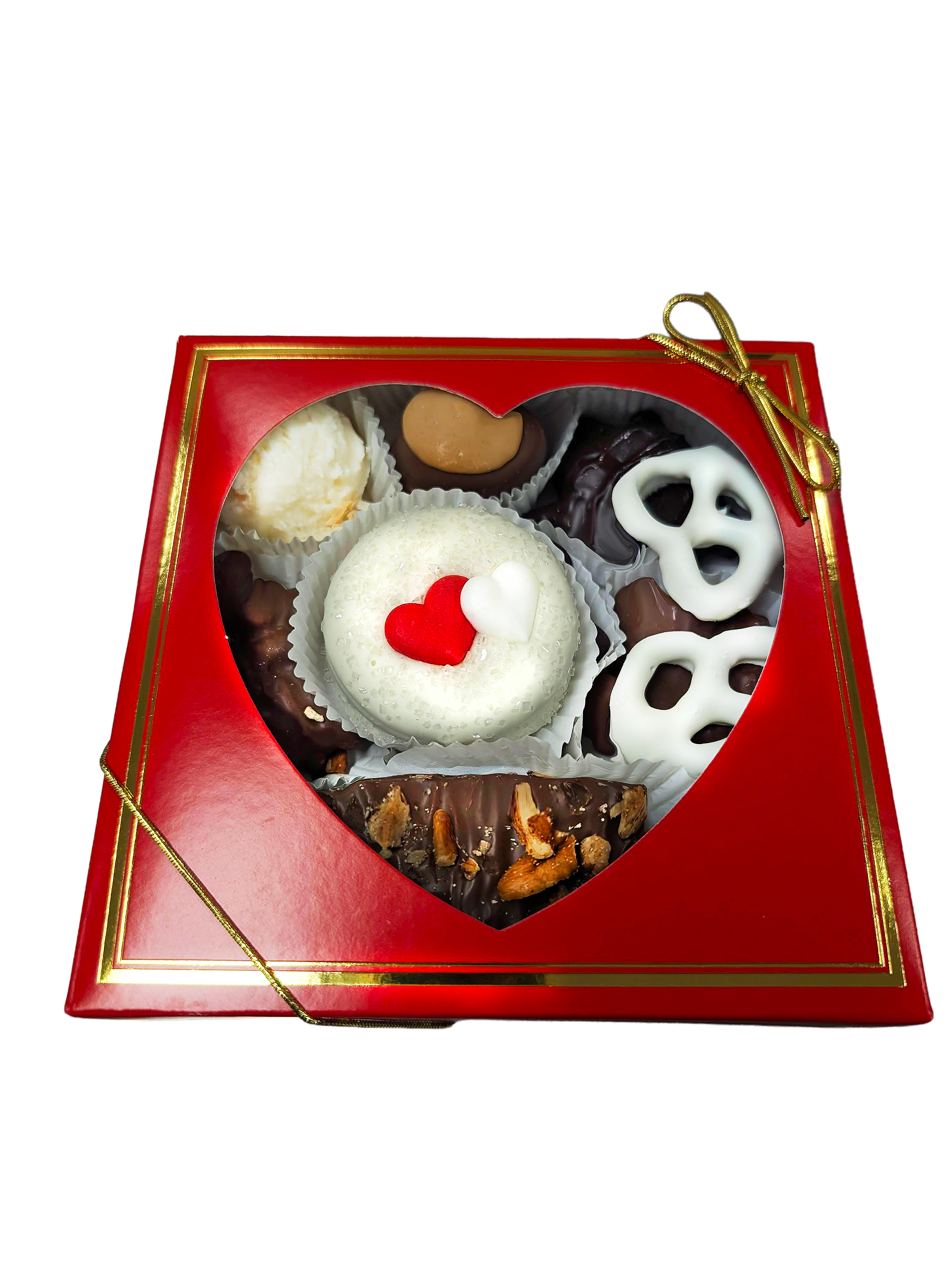 This gourmet chocolate box features 1lb of a decorated assortment of decadent milk and dark chocolates, including chocolate-covered Oreos and nut clusters.